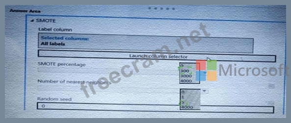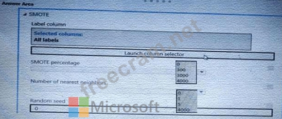The training set is unbalanced between two Classes. You must increase the number of training examples for class 1 to 4,000 by using data rows. You add the Synthetic Minority Oversampling Technique (SMOTE) module to the experiment.