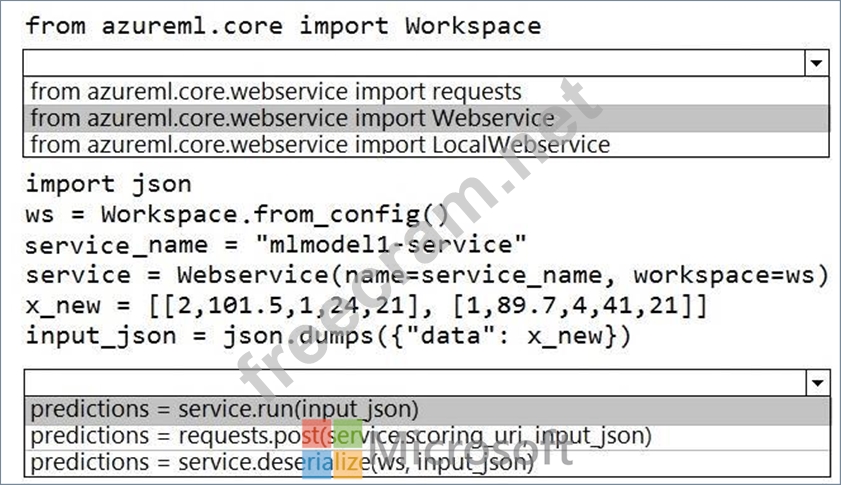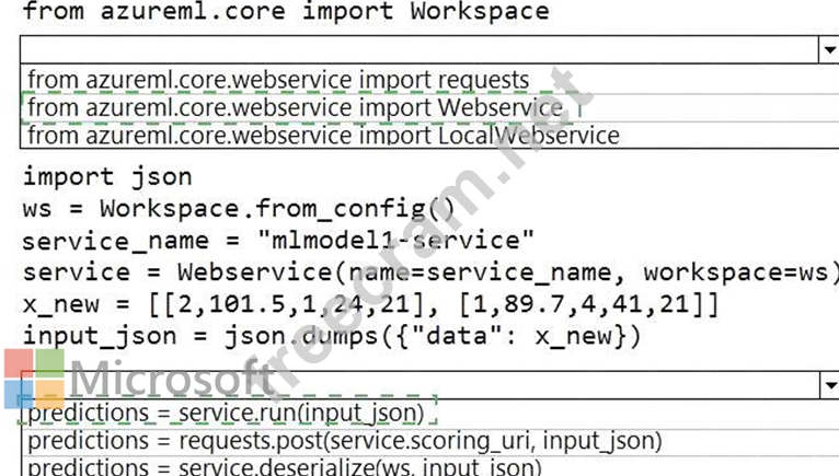 The following code shows how to use the SDK to update the model, environment, and entry script for a web service to Azure Container Instances: