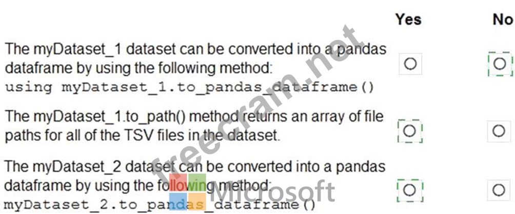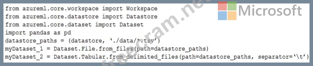 You plan to aggregate data for all of the TSV files together and then register the aggregated data as a dataset in an Azure Machine Learning workspace by using the Azure Machine Learning SDK for Python.