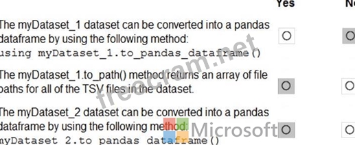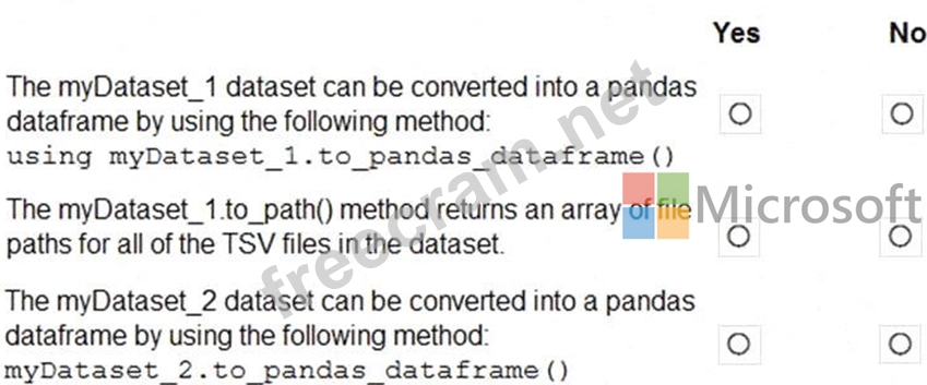 You have an Azure blob container that contains a set of TSV files. The Azure blob container is registered as a datastore for an Azure Machine Learning service workspace. Each TSV file uses the same data schema.