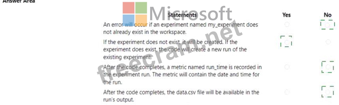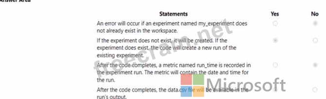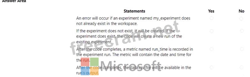 Question 46: You have an Azure Machine Learning workspace. You run the fo...