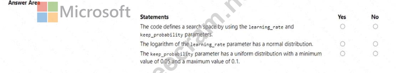 Question 86: You are using the Azure Machine Learning Service to automate...
