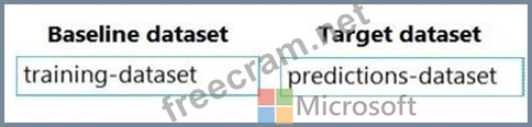 Which datasets should you use to configure the data drift monitor? To answer, drag the appropriate datasets to the correct data drift monitor options. Each source may be used once, more than once, or not at all. You may need to drag the split bar between panes or scroll to view content.