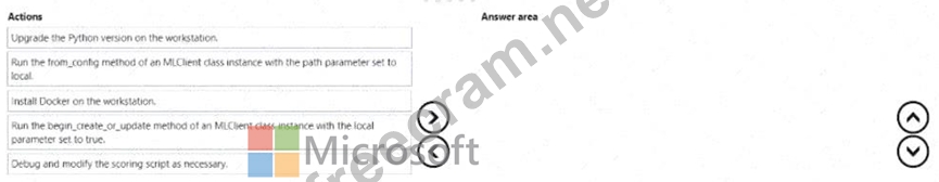 Which three actions should you perform m sequence? To answer, move the appropriate actions from the list of actions from the answer area and arrange them in the correct order.