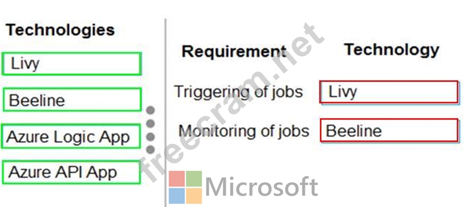 Which technologies should you recommend? To answer, drag the appropriate technologies to the correct locations. Each technology may be used once, more than once, or not at all. You may need to drag the split bar between panes or scroll to view content.