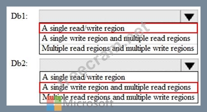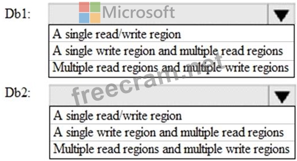 * Db1 must meet an SLA of 99.99% for both reads and writes.