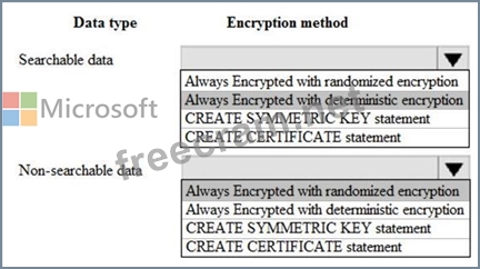 Note: With Always Encrypted the Database Engine never operates on plaintext data stored in encrypted columns, but it still supports some queries on encrypted data, depending on the encryption type for the column. Always Encrypted supports two types of encryption: randomized encryption and deterministic encryption.