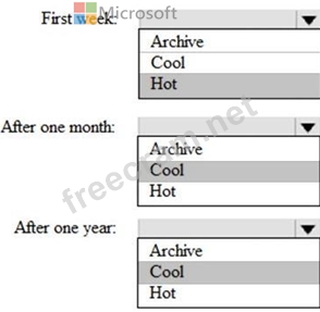 You are designing an application that will store petabytes of medical imaging data When the data is first created, the data will be accessed frequently during the first week. After one month, the data must be accessible within 30 seconds, but files will be accessed infrequently. After one year, the data will be accessed infrequently but must be accessible within five minutes.