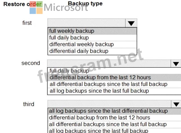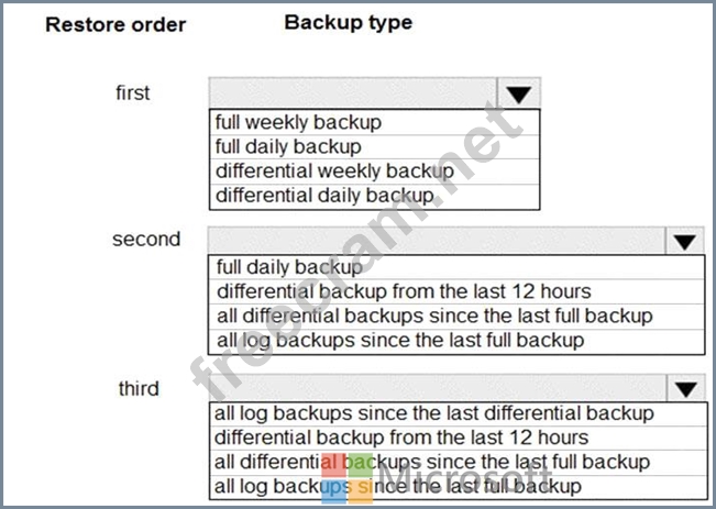 You need to recommend which backups to use and the order in which to restore backups.