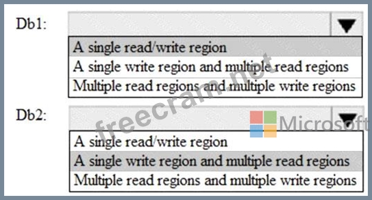 * Db1 must meet an SLA of 99.99% for both reads and writes.