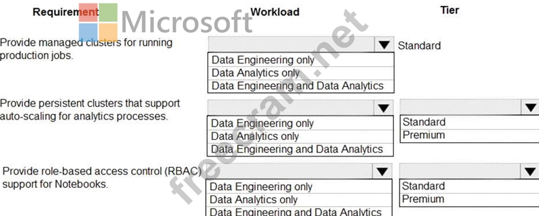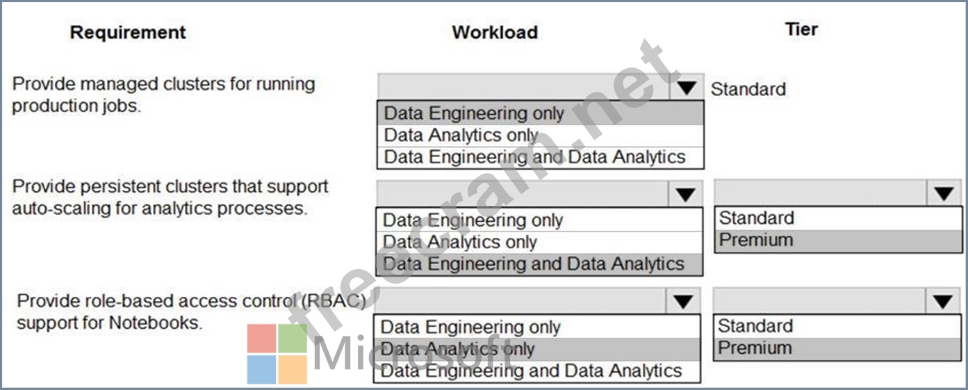 Premium required for RBAC. Data Analytics Premium Tier provide interactive workloads to analyze data collaboratively with notebooks References: