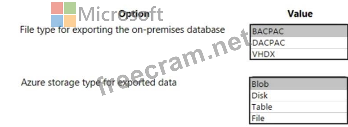 You manage an on-premises server named Server1 that has a database named Database1. The company purchases a new application that can access data from Azure SQL Database.