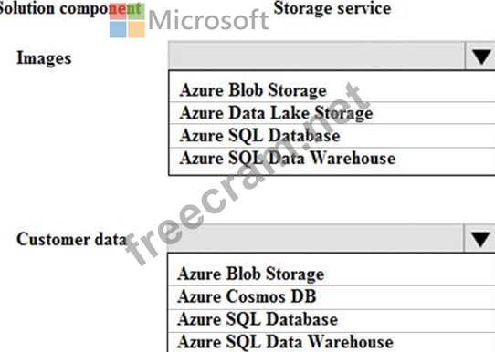 Which storage services should you recommend? To answer, select the appropriate configuration in the answer area.