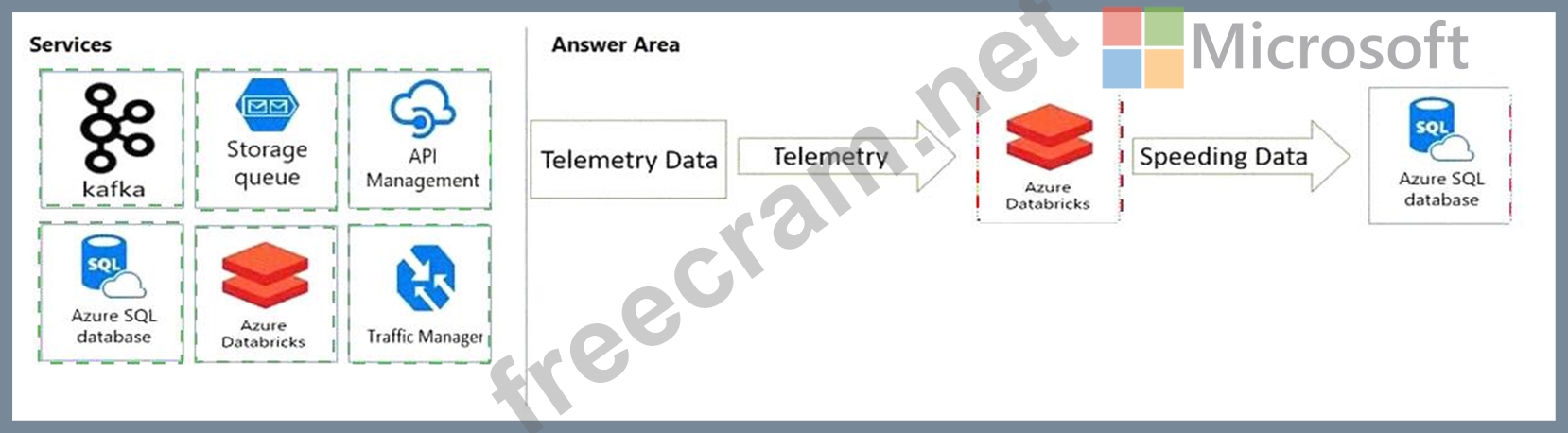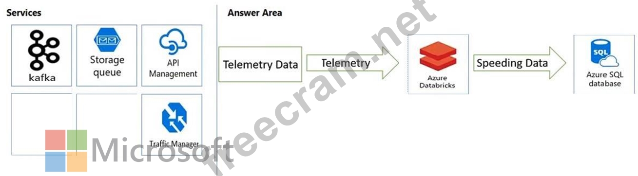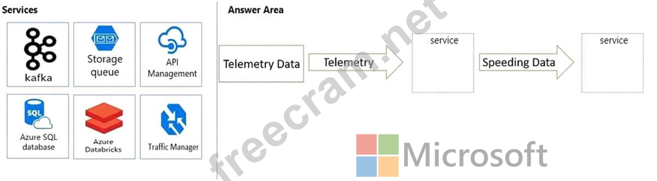 How should you design the pipeline? To answer, drag the appropriate services to the correct locations. Each service may be used once, more than once, or not at all. You may need to drag the split bar between panes or scroll to view content.