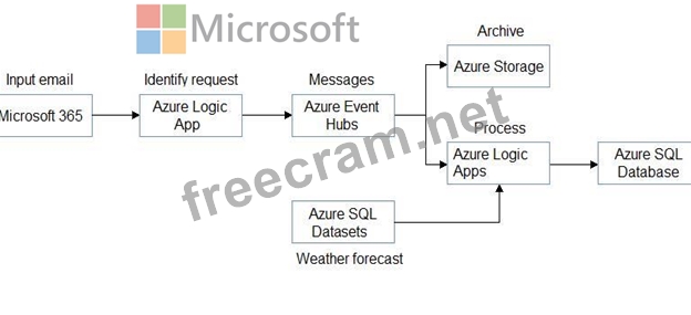 You are designing a real-time processing solution for maintenance work requests that are received via email.