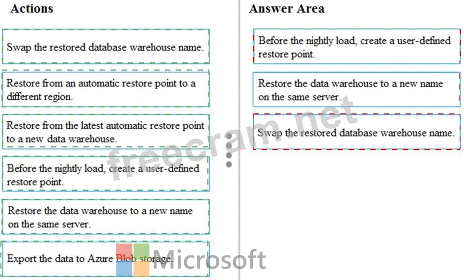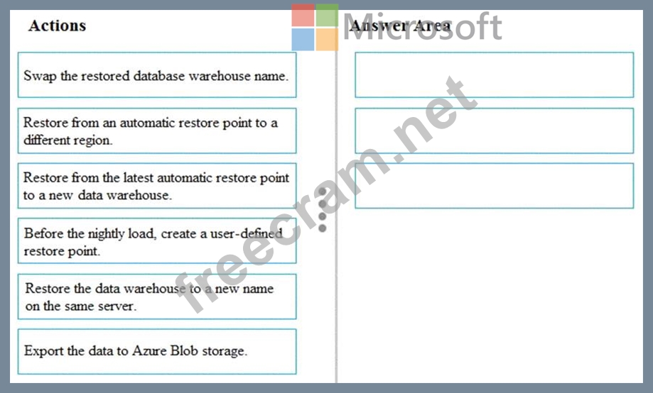 Which three actions should you perform in sequence? To answer, move the appropriate actions from the list of actions to the answer area and arrange them in the correct order.