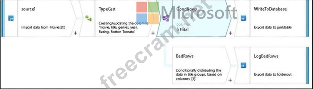 2. This conditional split transformation defines the maximum length of "title" to be five. Any row that is less than or equal to five will go into the GoodRows stream. Any row that is larger than five will go into the BadRows stream.