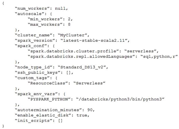 The following code segment is used to create an Azure Databricks cluster.