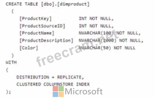 You plan to create a table named DimProduct.