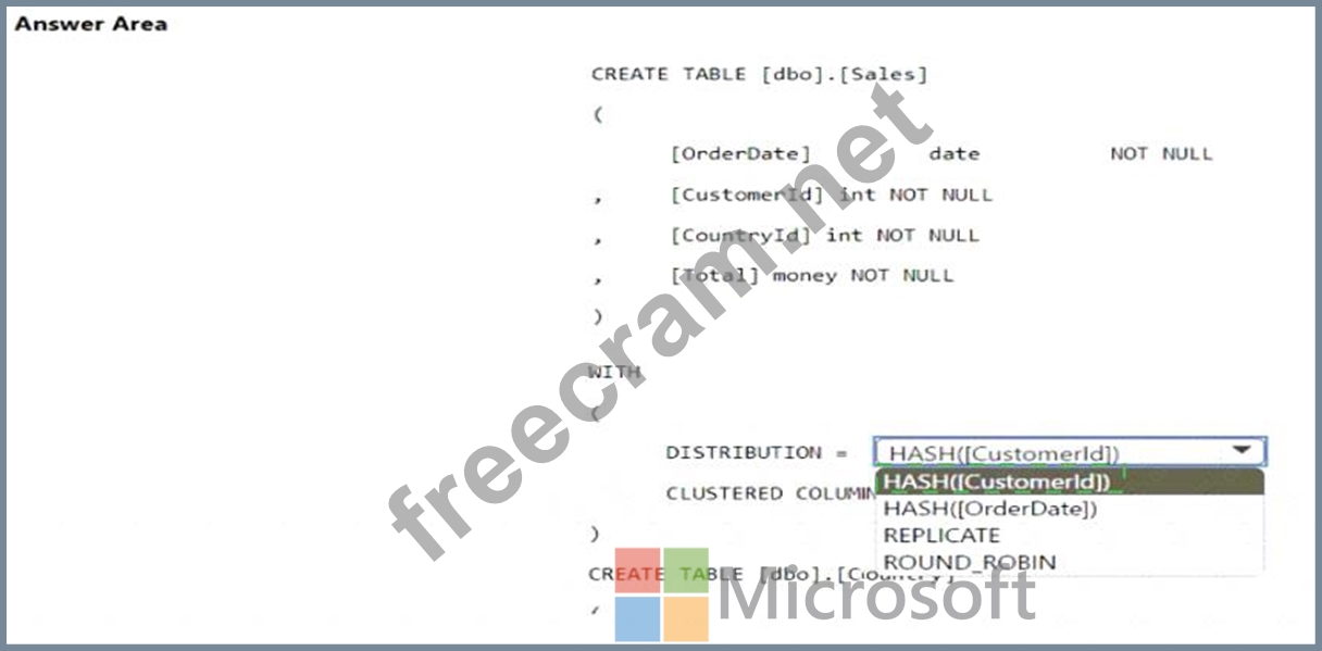 Question 68: You plan to create a table in an Azure Synapse Analytics ded...