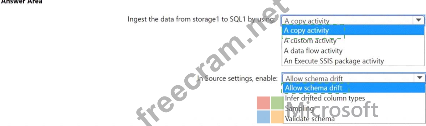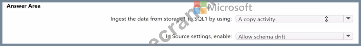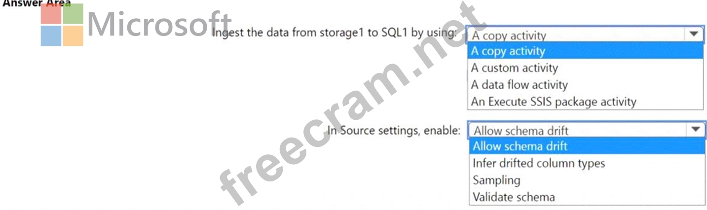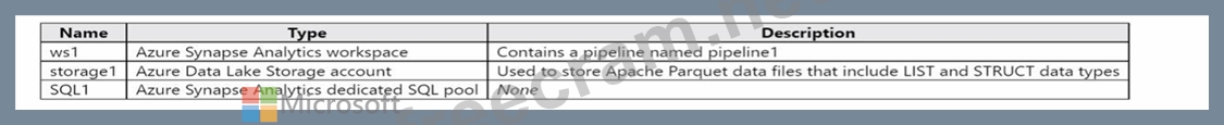 You need to ingest the Parquet files from storage1 to SQL1 by using pipeline1. The solution must meet the following requirements: