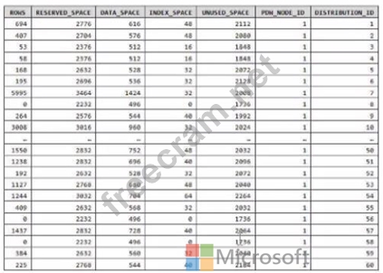 You have an Azure Synapse Analytics dedicated SQL pool. You run PDW_SHOWSPACEUSED(dbo,FactInternetSales'); and get the results shown in the following table. Which statement accurately describes the dbo,FactInternetSales table?