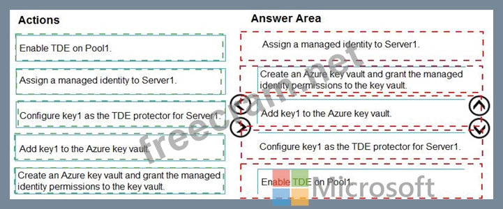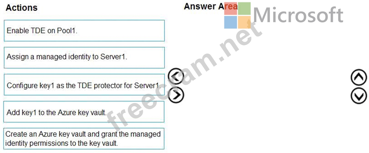 You need to implement Transparent Data Encryption (TDE) on Pool1 by using a custom key named key1.
