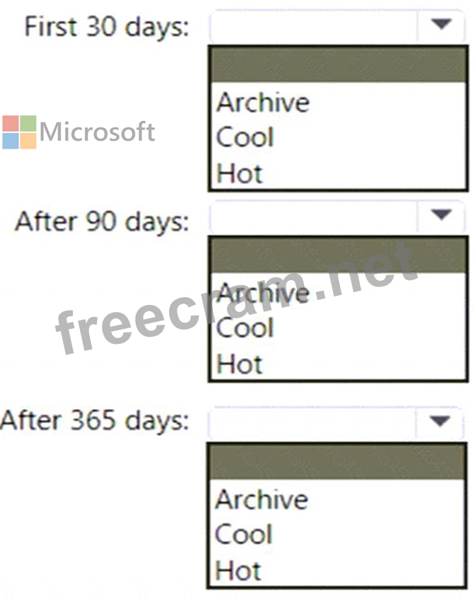 The data will be accessed several times a day during the first 30 days after the data is created. The data must meet an availability SLA of 99.9%.