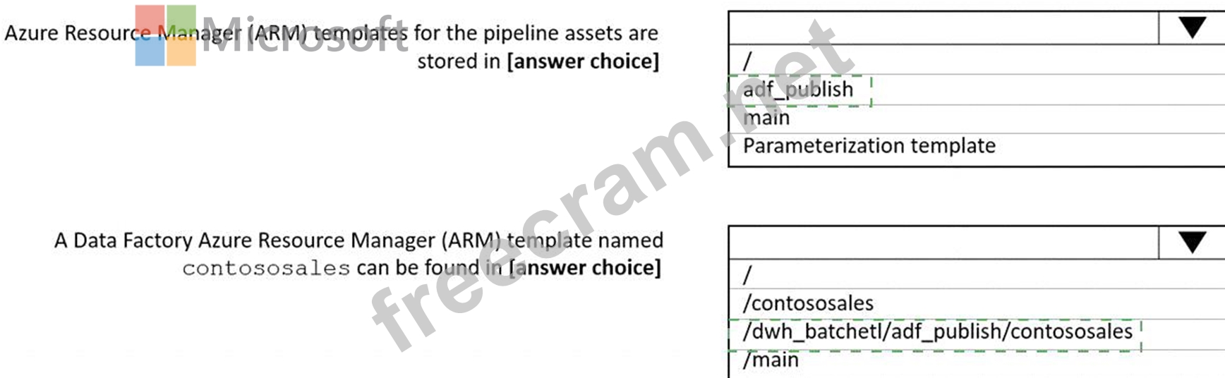 Question 4: You have an Azure data factor/ connected to a Git repository...