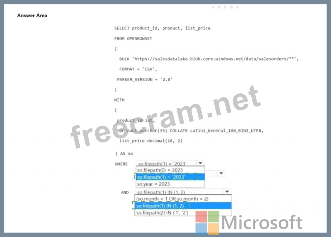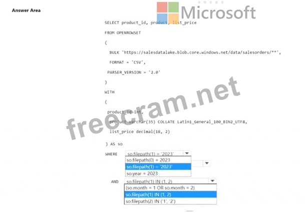 You have an Azure Data Lake Storage account that contains CSV files. The CSV files contain sales order data and are partitioned by using the following format.