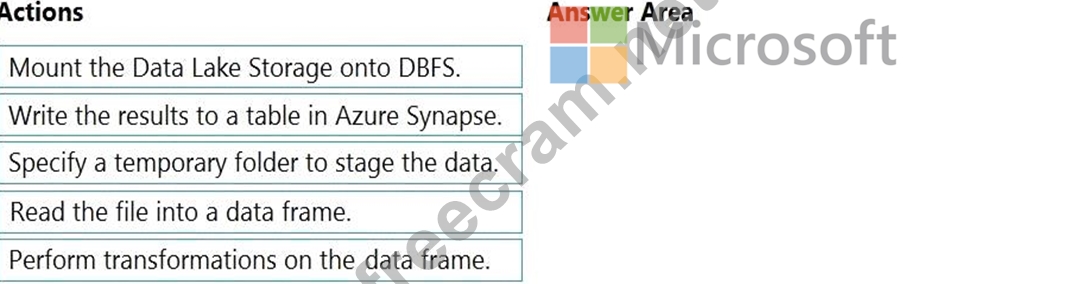 You upload the transformed data frame into Azure Synapse. You use the Azure Synapse connector for Azure Databricks to directly upload a dataframe as a table in a Azure Synapse.