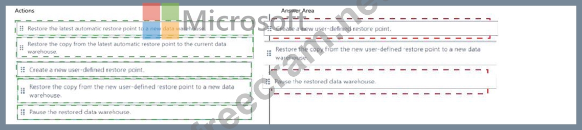 Which three actions should you perform in sequence? To answer, move the appropriate actions from the list of actions to the answer area and arrange them in the correct order.