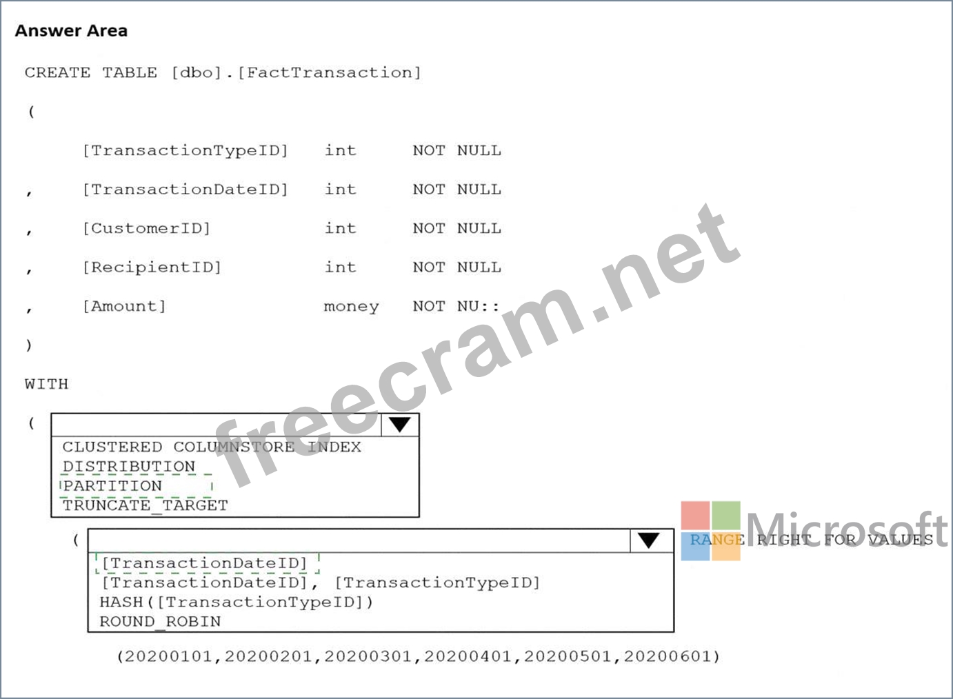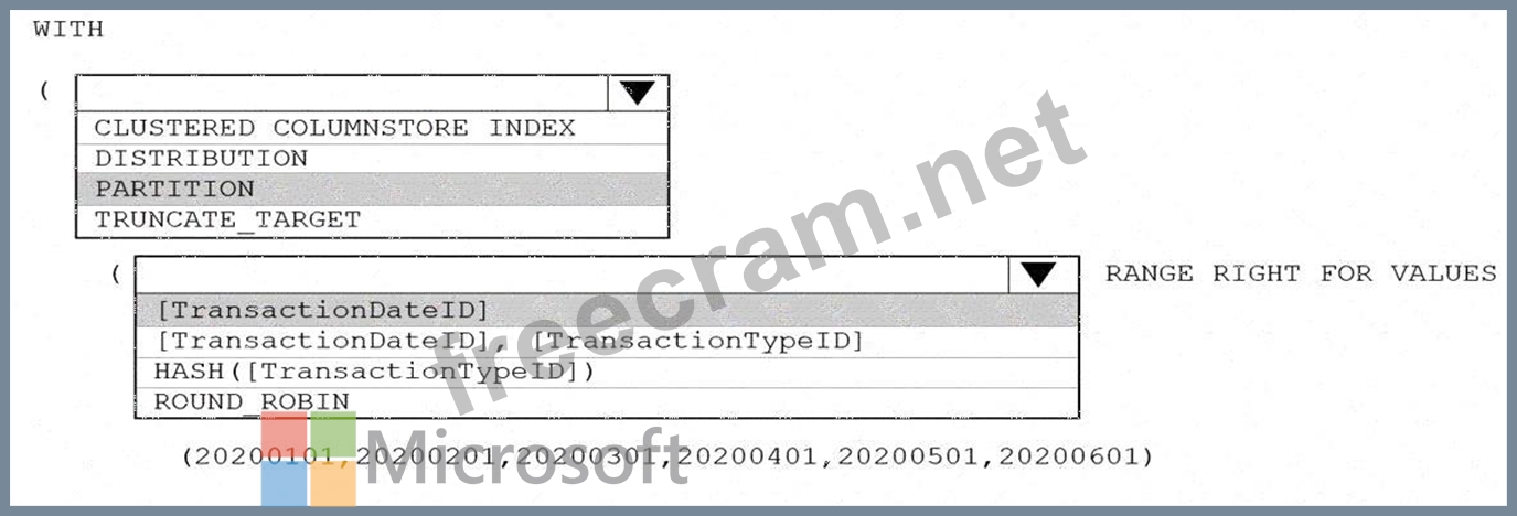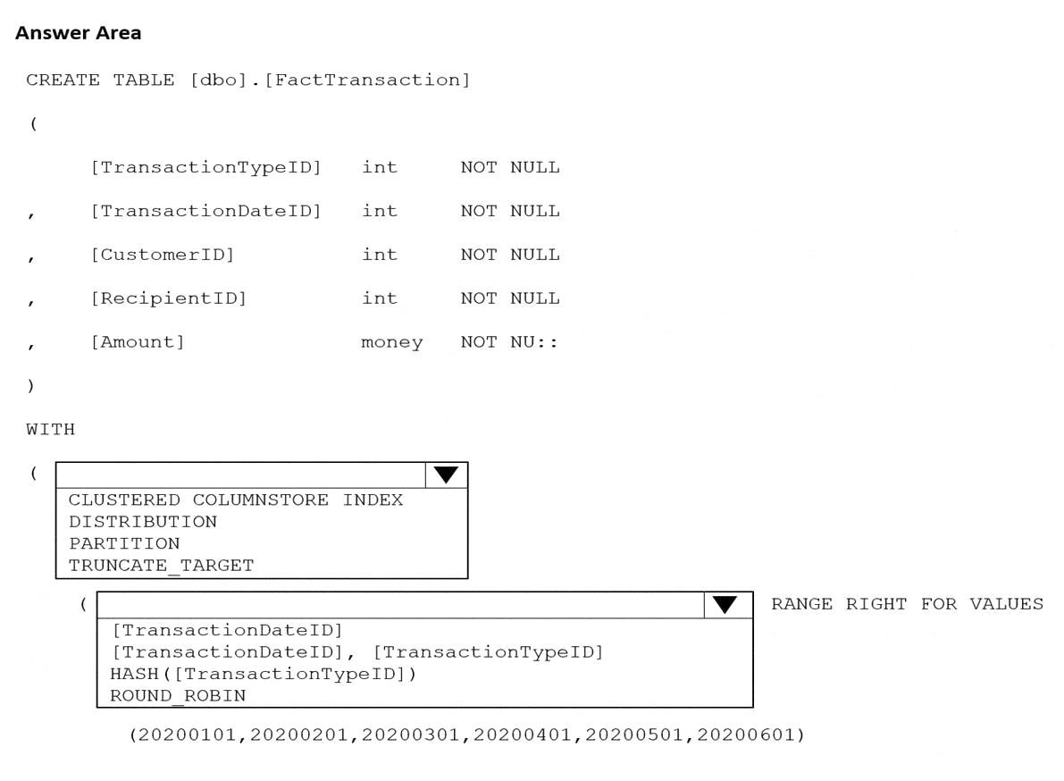 You are building an Azure Synapse Analytics dedicated SQL pool that will contain a fact table for transactions from the first half of the year 2020.