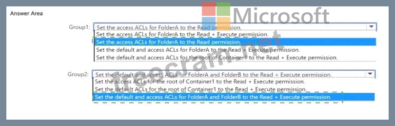 How should you configure the ACL permissions for each group? To answer, select the appropriate options in the answer area. NOTE: Each correct selection is worth one point.