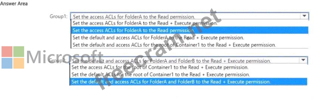 You have an Azure Data Lake Storage Gen2 account named account1 that contains a container named Container"1. Container1 contains two folders named FolderA and FolderB.