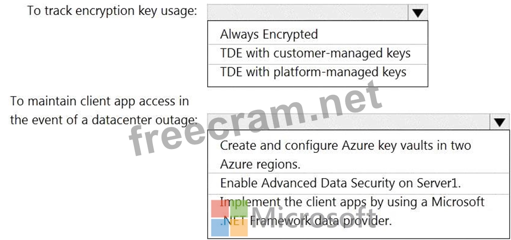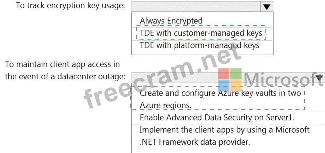 * Maintain the access of client apps to Pool1 in the event of an Azure datacenter outage that affects the availability of the encryption keys.