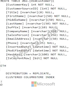 You plan to implement a star schema in pool1 and create a new table named DimCustomer by using the following code.