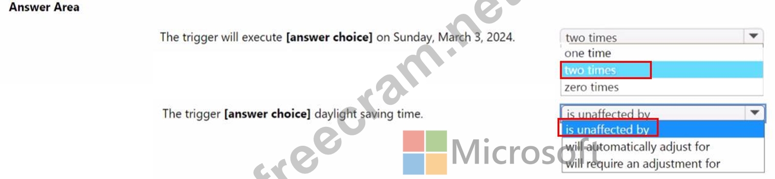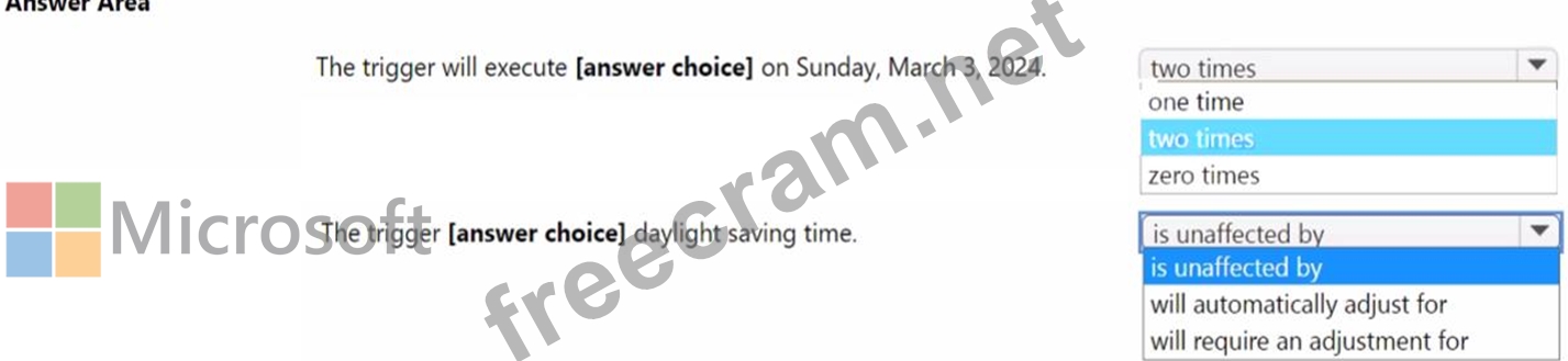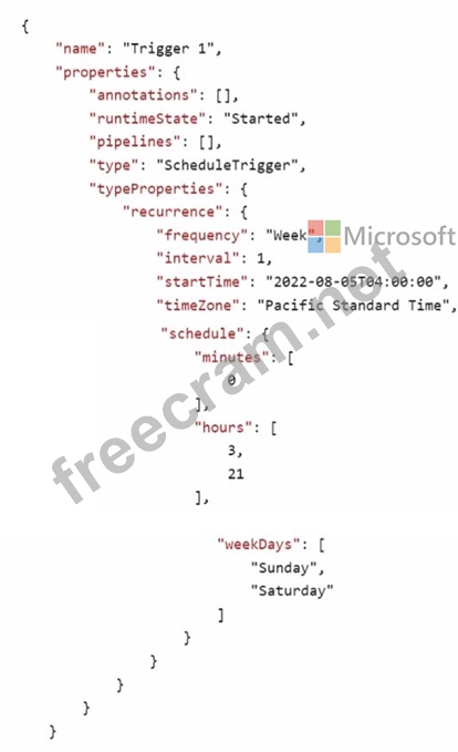Question 78: You have a trigger in Azure Data Factory configured as shown...