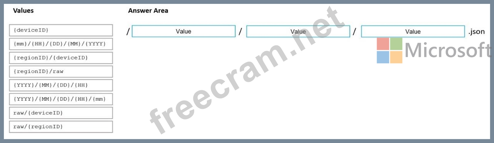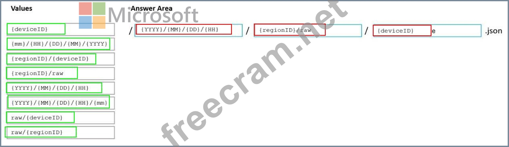 You are designing an Azure Data Lake Storage Gen2 structure for telemetry data from 25 million devices distributed across seven key geographical regions. Each minute, the devices will send a JSON payload of metrics to Azure Event Hubs.