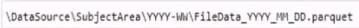 Data will be secured by data source. -> Use DataSource as top folder. Most queries will include a filter on the current year or week -> Use \YYYY\WW\ as subfolders. Common Use Cases A common use case is to filter data stored in a date (and possibly time) folder structure such as /YYYY/MM/DD/ or /YYYY/MM/YYYY-MM-DD/. As new data is generated/sent/copied/moved to the storage account, a new folder is created for each specific time period. This strategy organises data into a maintainable folder structure.