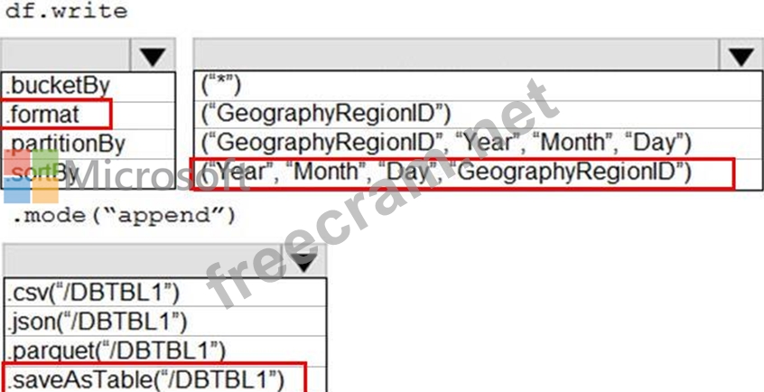 How should you complete the code? To answer, select the appropriate options in the answer area.