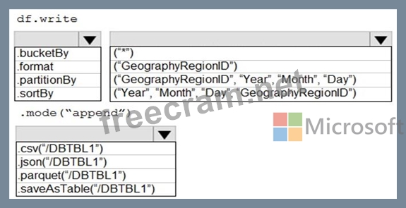 Question 34: You develop a dataset named DBTBL1 by using Azure Databricks...