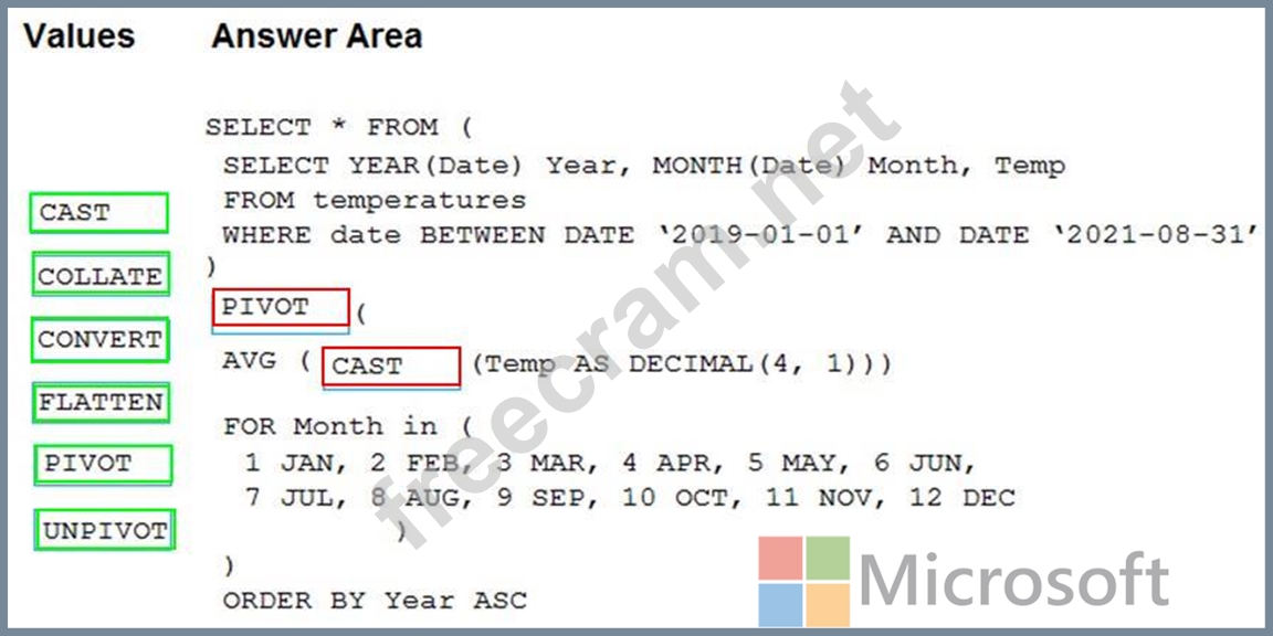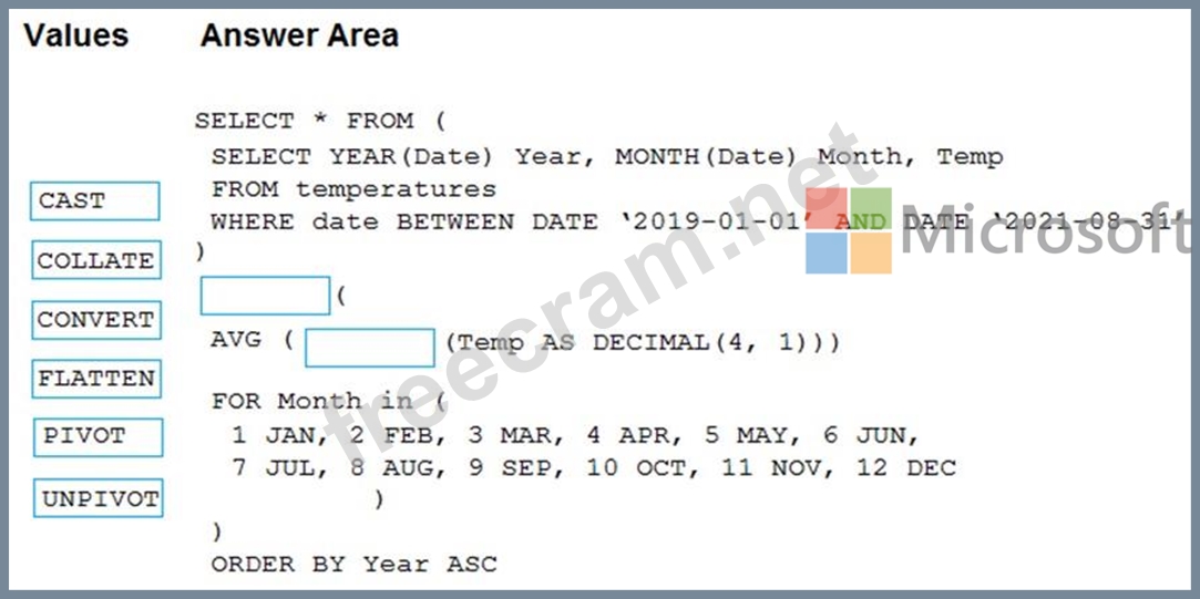 How should you complete the query? To answer, drag the appropriate values to the correct targets. Each value may be used once, more than once, or not at all. You may need to drag the split bar between panes or scroll to view content.