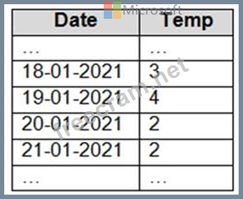 You have an Apache Spark DataFrame named temperatures. A sample of the data is shown in the following table.