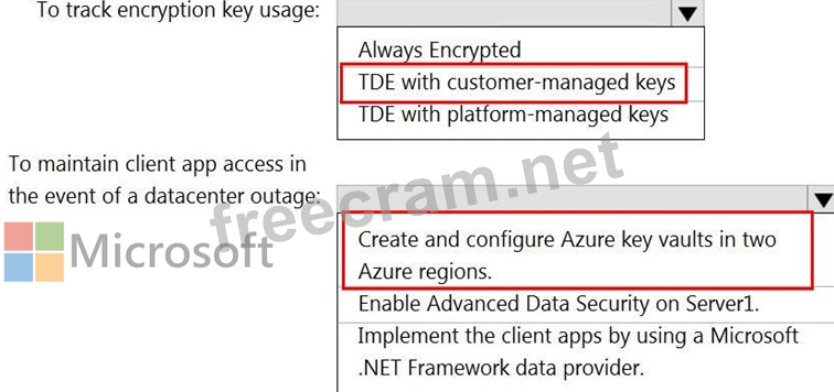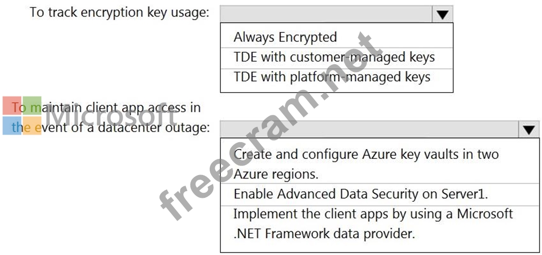 Maintain the access of client apps to Pool1 in the event of an Azure datacenter outage that affects the availability of the encryption keys.