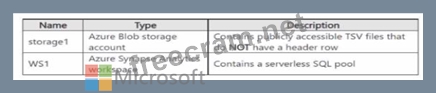 You need to read the TSV files by using ad-hoc queries and the openrowset function The solution must assign a name and override the inferred data type of each column.