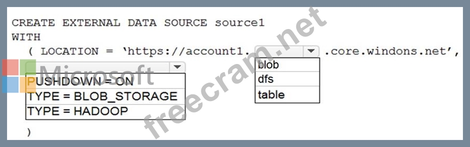 How should you complete the Transact-SQL statement? To answer, select the appropriate options in the answer area.
