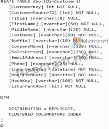 You plan to implement a star schema in pool1 and create a new table named DimCustomer by using the following code.