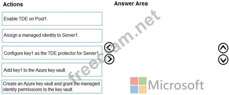 You need to implement Transparent Data Encryption (TDE) on Pool1 by using a custom key named key1.