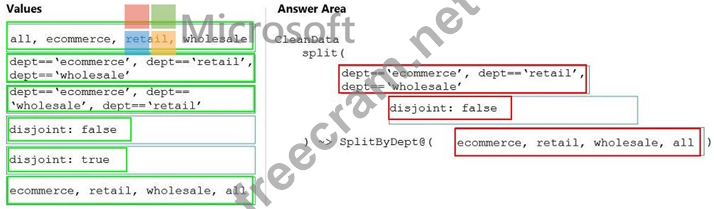 You need to create an Azure Data Factory pipeline to process data for the following three departments at your company: Ecommerce, retail, and wholesale. The solution must ensure that data can also be processed for the entire company.